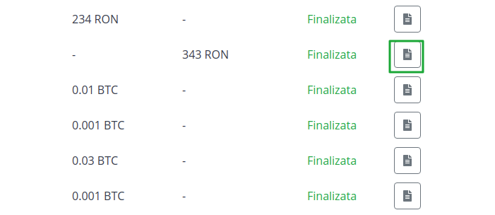 On this page, you will find a table with all the transactions you have made on the platform. On the right side of the table, next to each transaction, there is a button.