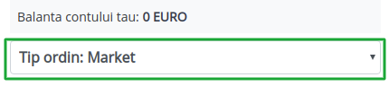 Selectezi tipul ordinului: Market, Limit. Stop Loss sau FOK.