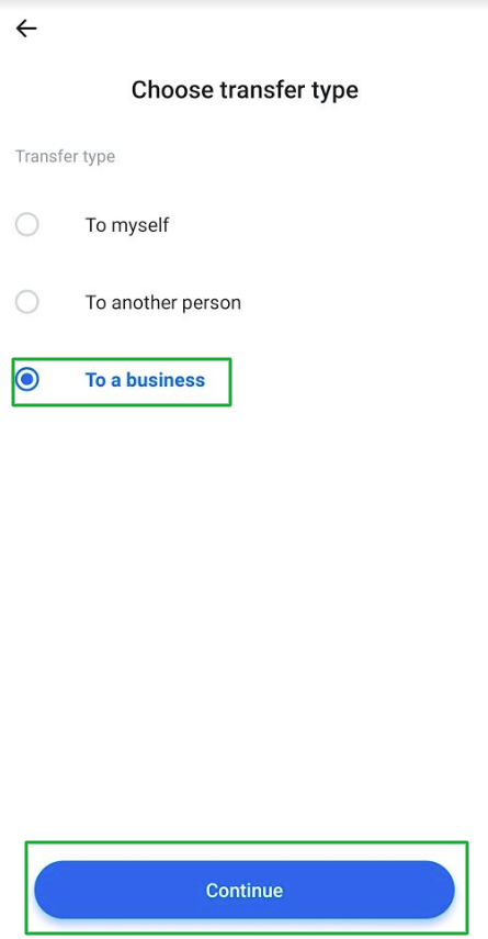 11. Selecteaza To a business iar dupa aceea apasa pe butonul Continue