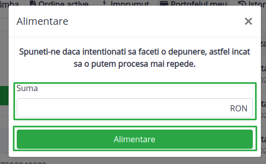 6. Dupa ce ai introdus suma si ai apasat pe butonul Alimentare o sa vezi informatiile pentru transfer bancar. Aceste informatii o sa le folosesti in pasul 13.
