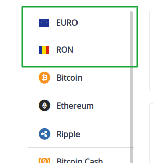 2. Din meniul din partea stanga selecteaza EURO sau RON in functie de moneda in care doresti sa efectuezi transfer de bani din contul Revolut