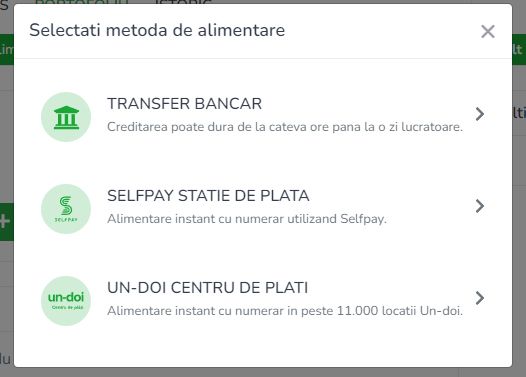 4. Selecteaza metoda de alimentare: Transfer Bancar