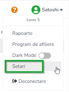 Pentru a activa autentificarea 2FA trebuie sa te autentifici in aplicatie si sa mergi in sectiunea Setari.