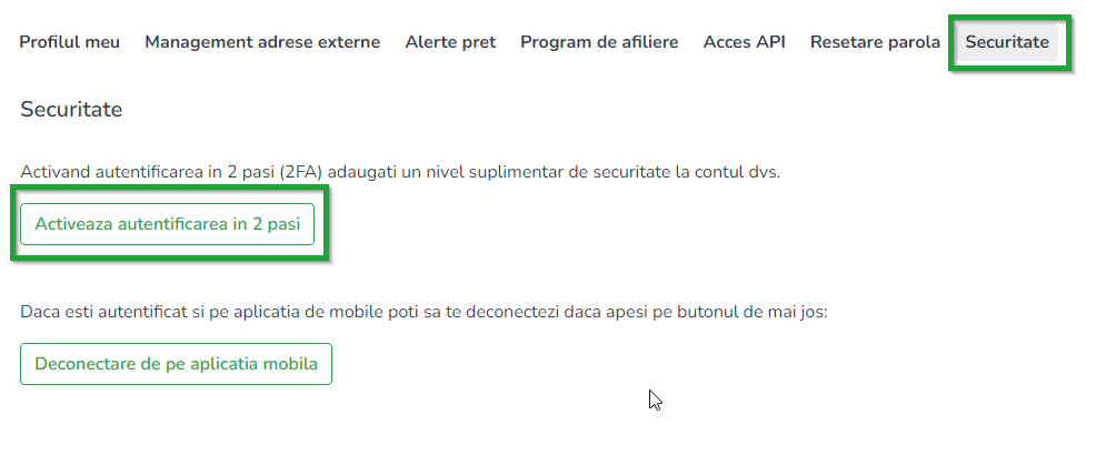 2FA se poate activa doar din varianta browser a aplicatiei! #