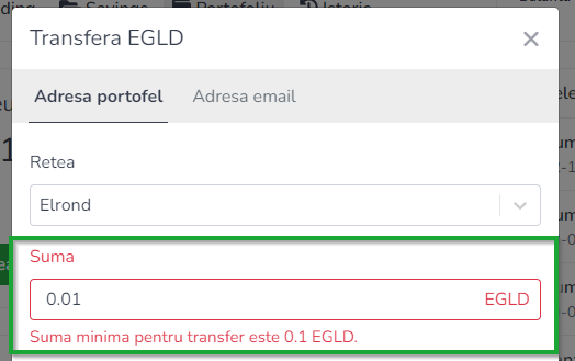 Pentru transferul de monede digitale exista limite minime care permit functionarea corecta a platformei.